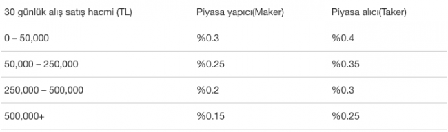 BTCTurk.com komisyon (fee) ücreti